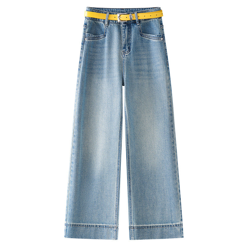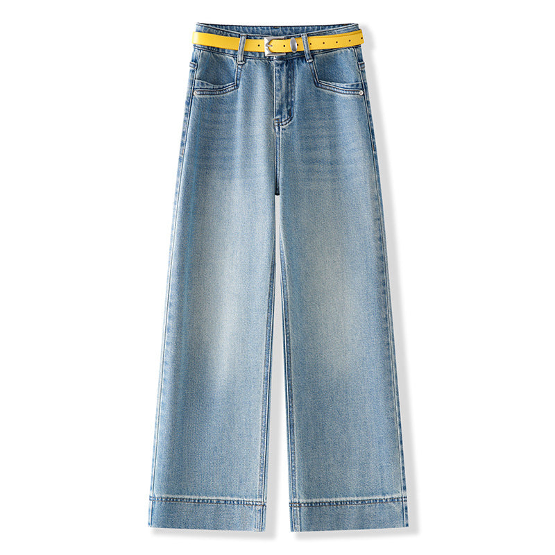 Blue high waist narrow version thin loose wide leg pants design sense jeans women’s 2025 spring popular new explosion